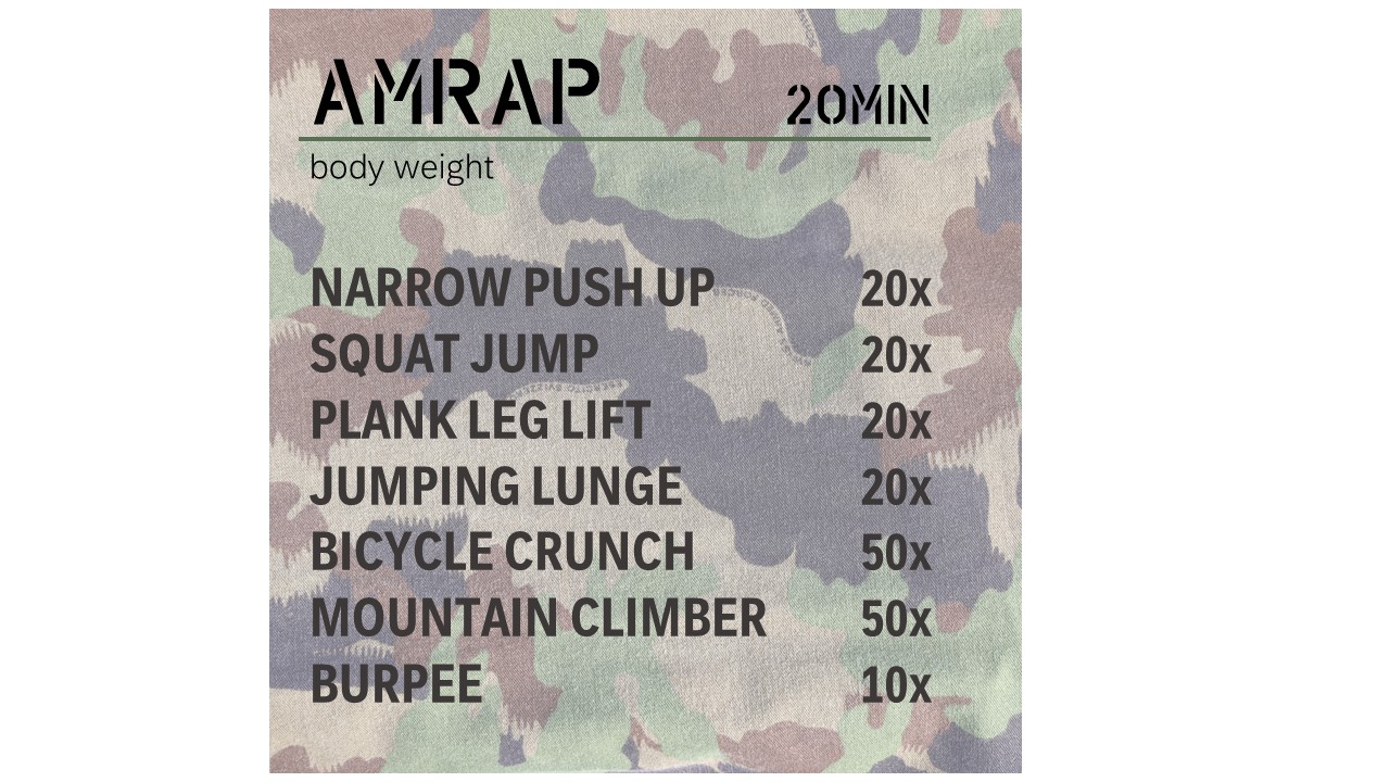 7 exercises - AMRAP: as many rounds as possible in 20 minutes.