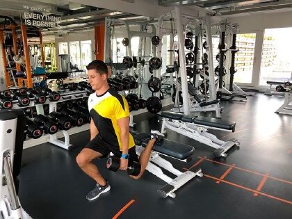 Fentes sur une jambe (gauche) ► rear foot elevated split squat / rear foot elevated split lunge
