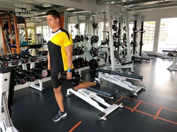Squat sur une jambe (gauche) ► rear foot elevated split squat / rear foot elevated split lunge