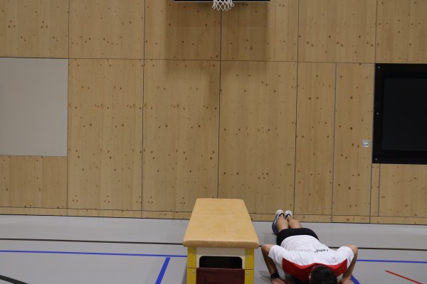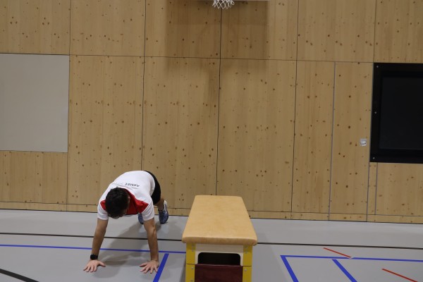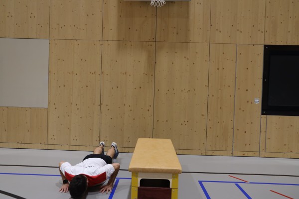 Die Teilnehmer nehmen die Liegestützposition ein und versuchen einen anderen Teilnehmer zu Fall (Knie auf dem Boden) zu bringen (Hände wegziehen, schubsen, ausweichen, aus dem Gleichgewicht bringen usw.). Wer die Liegestützposition verlässt, scheidet aus und führt eine Zusatzübung (z.B. Wandsitz, Liegestützen, Unterarmstütz) aus. Welcher Teilnehmer bleibt bis am Schluss in der Liegestützposition?
