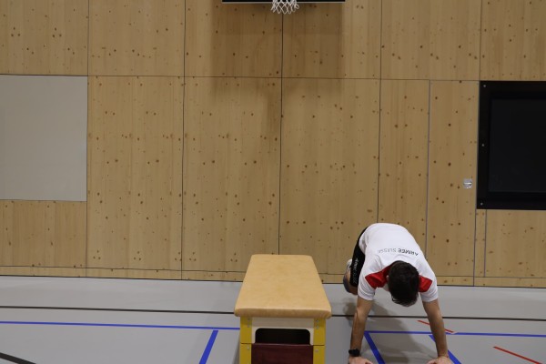 Kein Hohlkreuz in der Liegestützposition (Körperspannung).